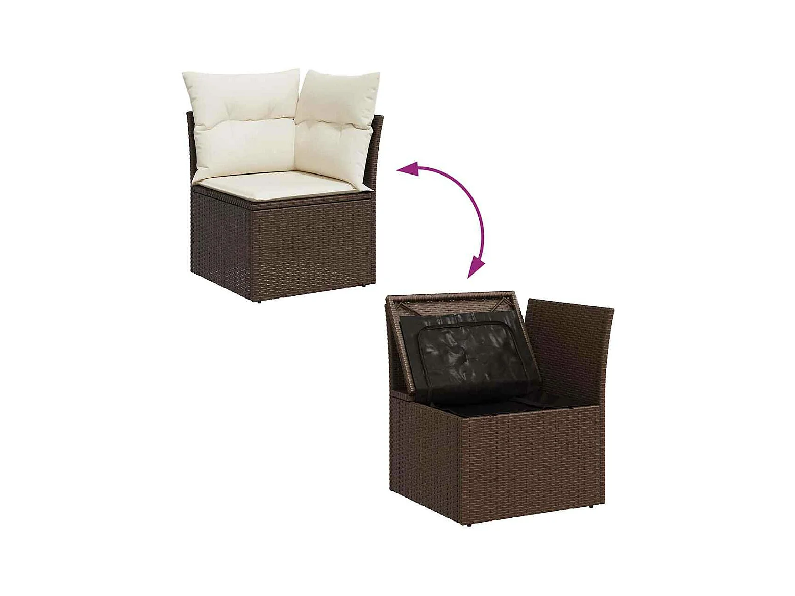 Set mobili da giardino con cuscini 7 pz in resina vimini marrone