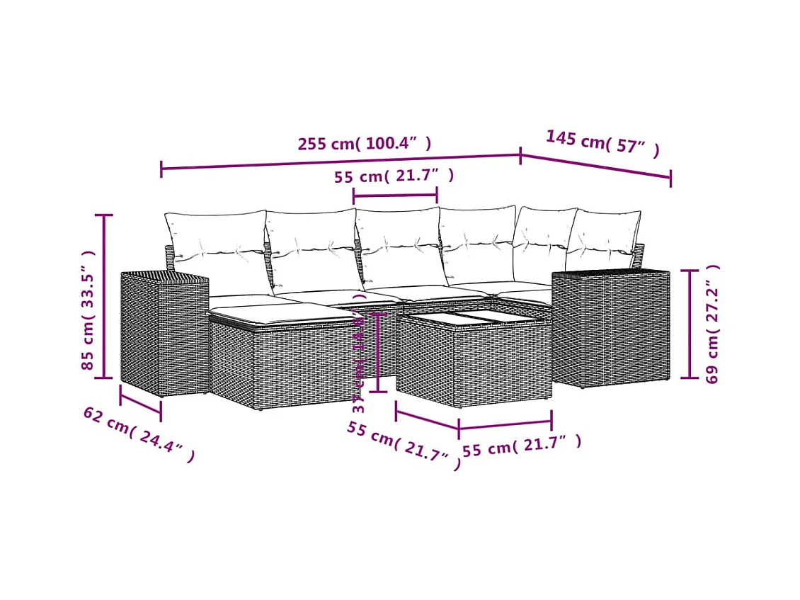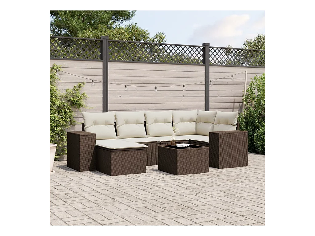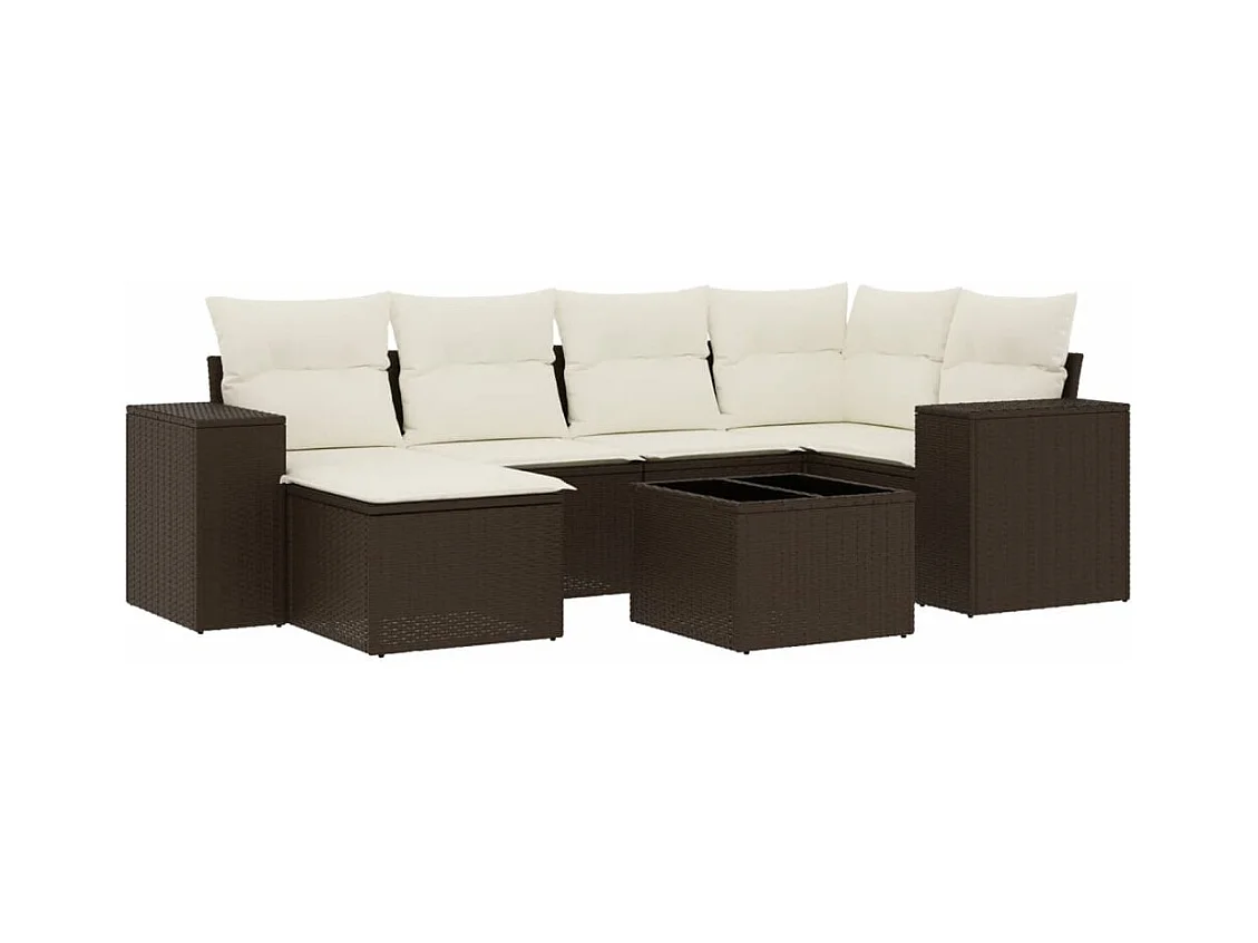 Set mobili da giardino con cuscini 7 pz in resina vimini marrone