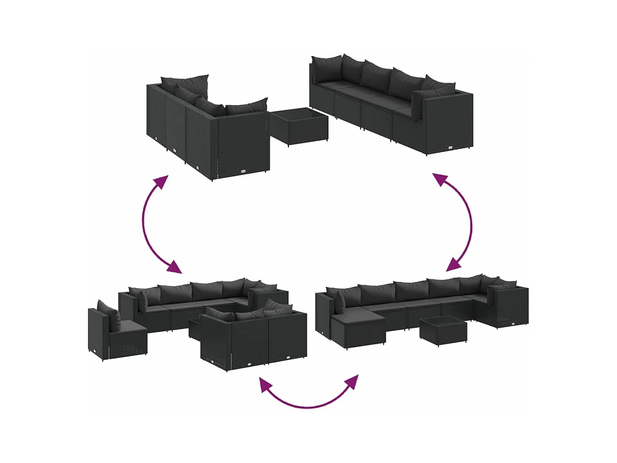 Set Divani da Giardino 4 pz con Cuscini Nero in Polyrattan