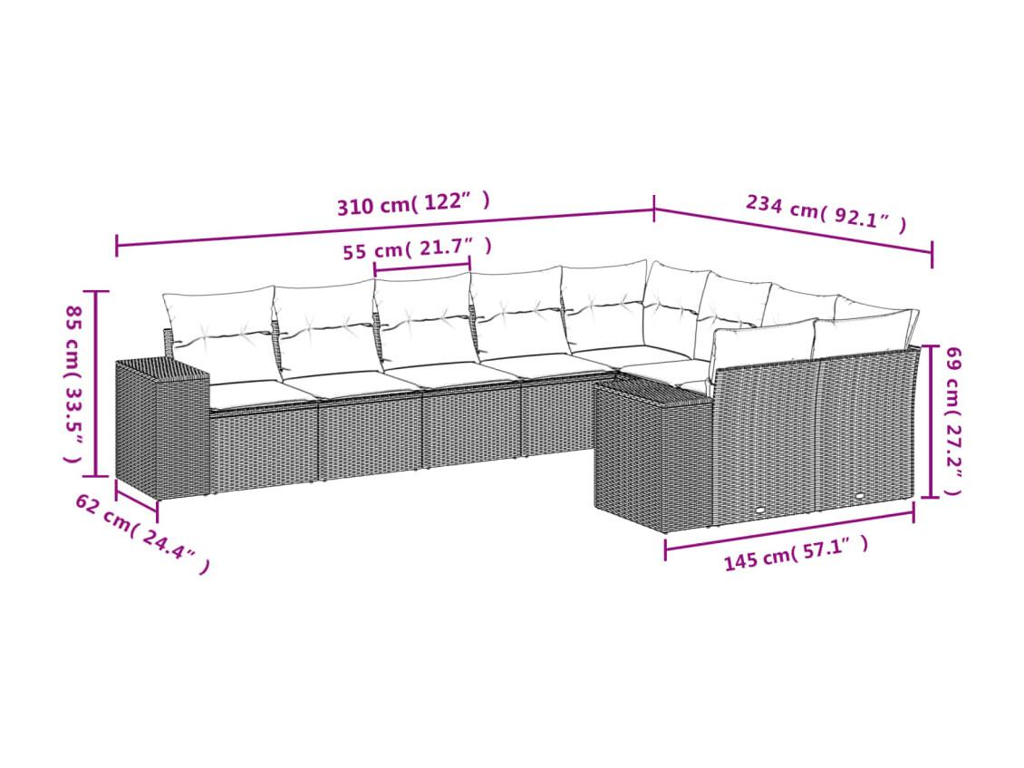 Set mobili da giardino con cuscini 9 pezzi in vimini marrone resina
