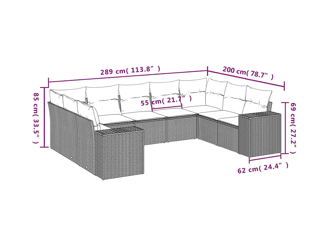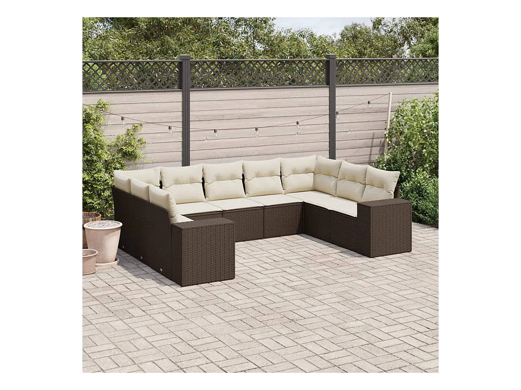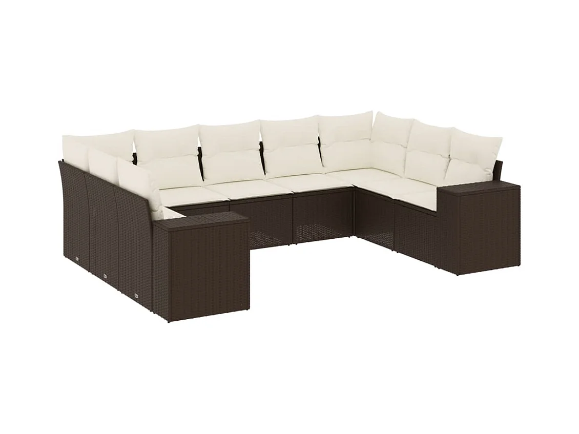 Set mobili da giardino con cuscini 9 pezzi in vimini marrone resina