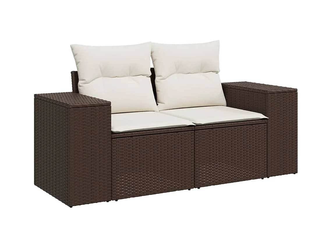 Set mobili da giardino con cuscini 7 pz in resina vimini marrone