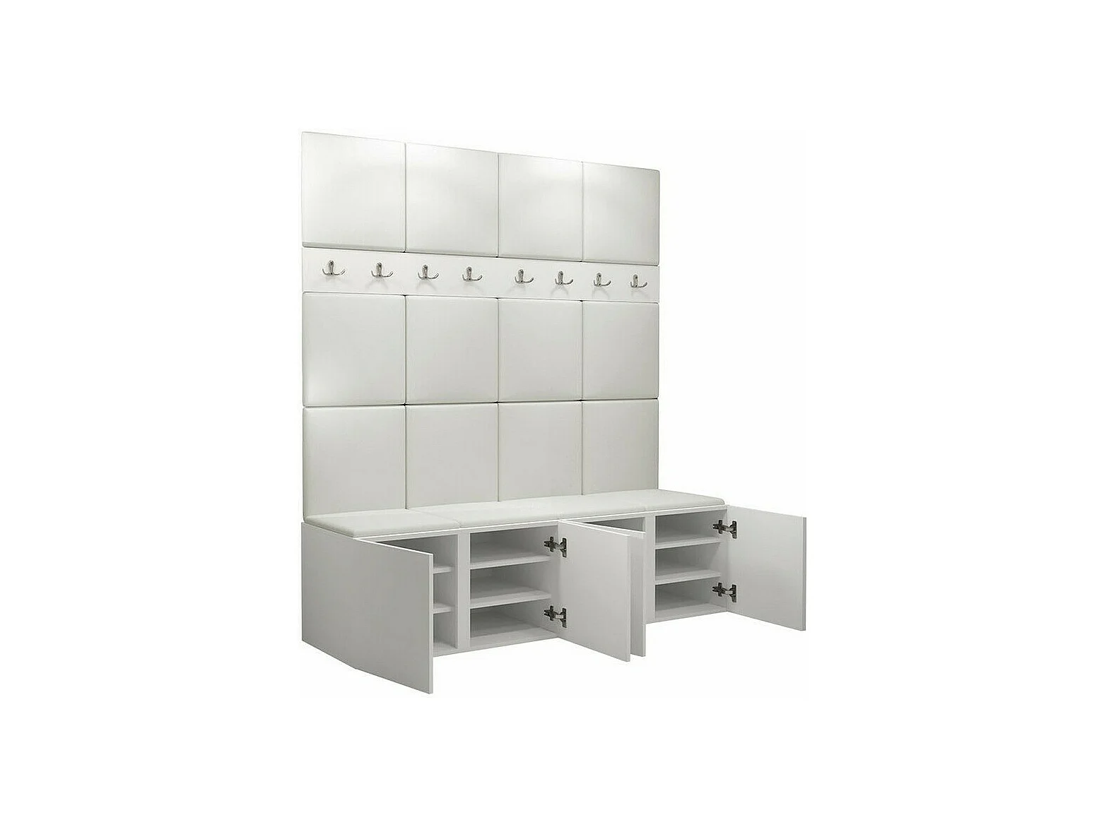Set mobili da ingresso Hartford 268, 186x168x46cm, Bianco, Eco pelle|Truciolare laminato