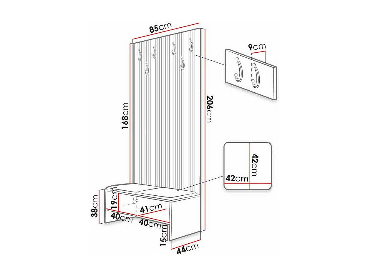 Set mobili da ingresso Hartford 383, 186x84x46cm, Bianco, Da terra|Montaggio a parete