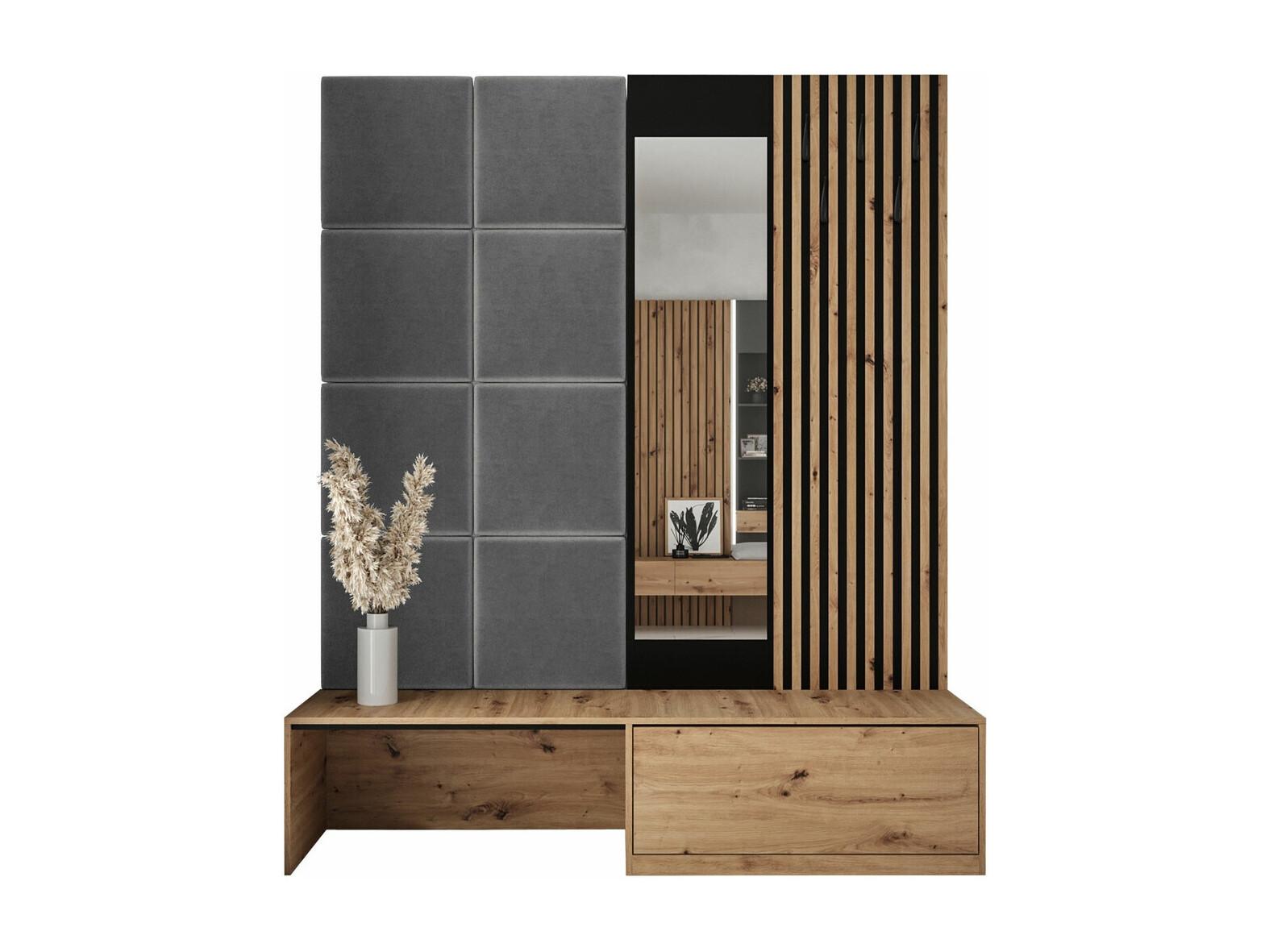 Set mobili da ingresso Hartford 322, 205x172x42cm, Specchio, Rovere Artisan|Nero