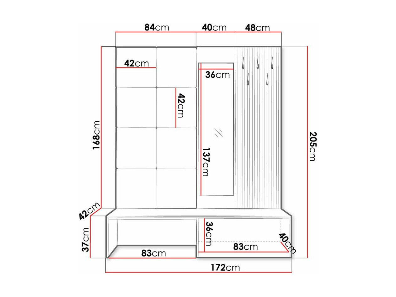 Set mobili da ingresso Hartford F100, 196x158x44cm, Nero, Truciolare laminato|Arazzo