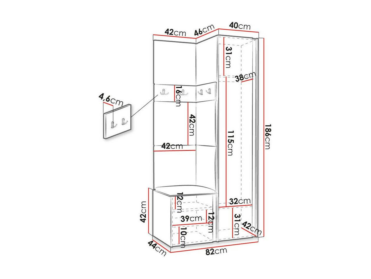 Set mobili da ingresso Hartford 379, 186x116x46cm, Bianco, Da terra|Montaggio a parete