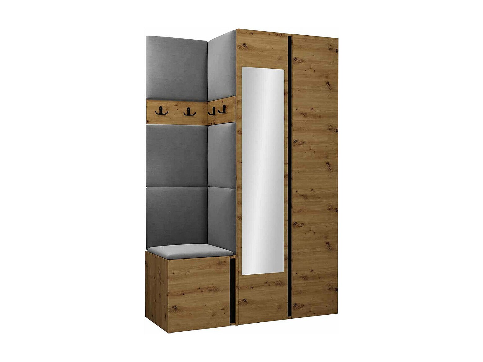 Set mobili da ingresso Hartford 350, 186x116x44cm, Specchio, Rovere Artisan|Nero