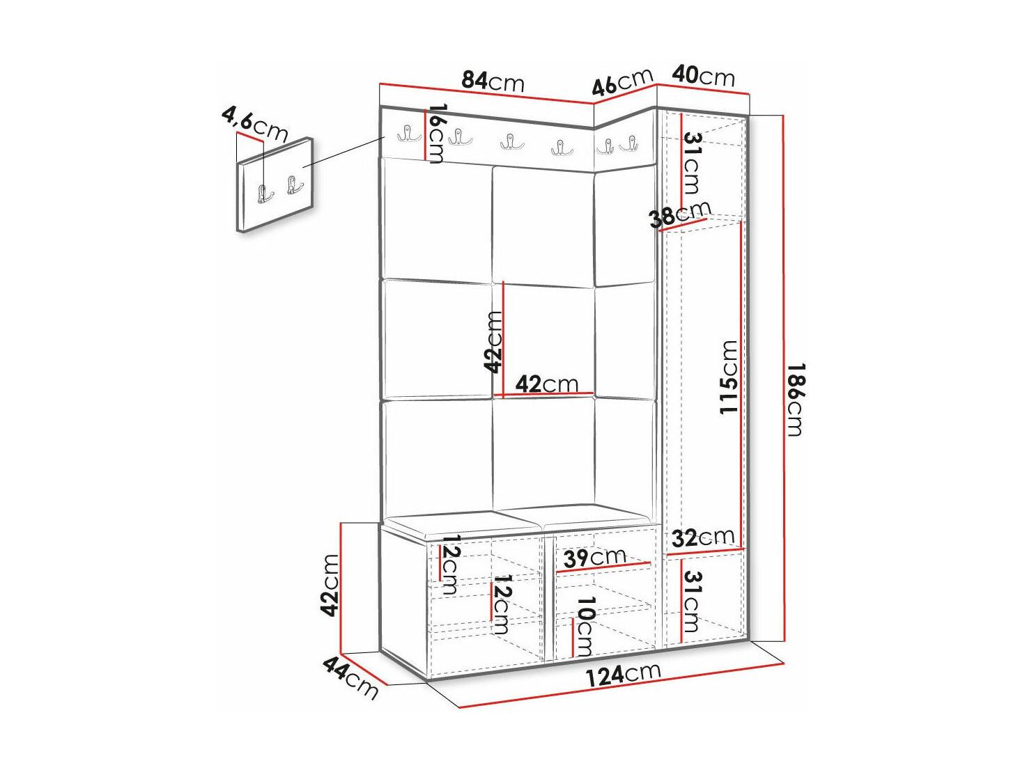 Set mobili da ingresso Hartford 379, 186x116x46cm, Bianco, Da terra|Montaggio a parete