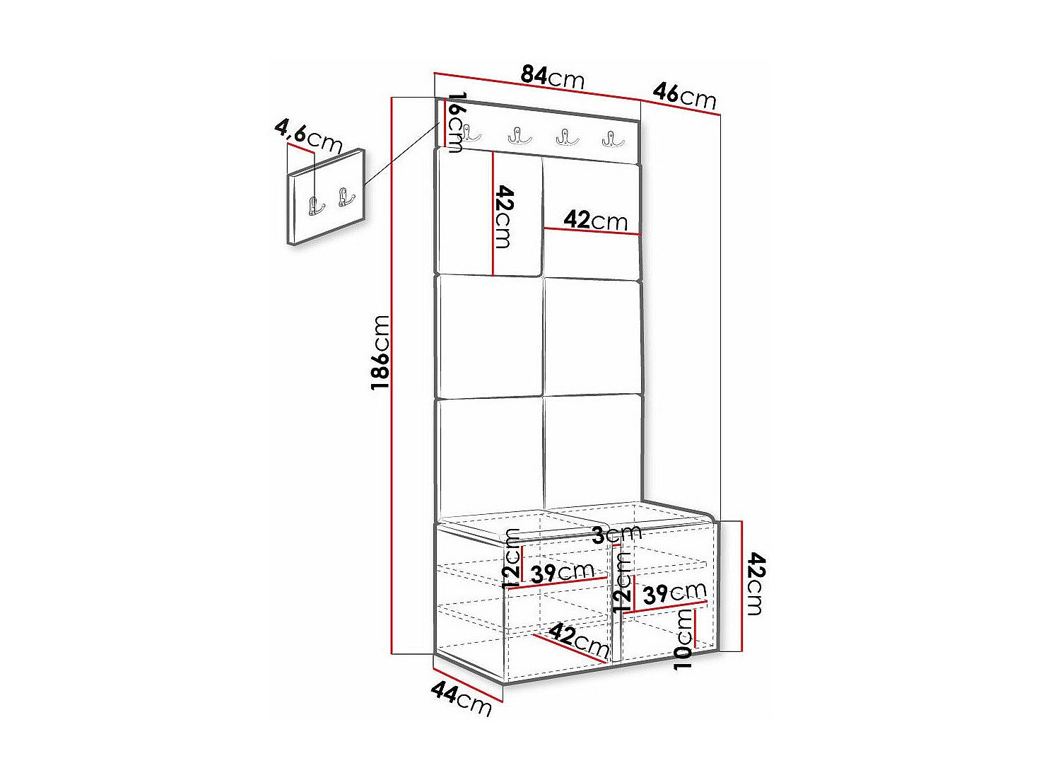 Set mobili da ingresso Hartford 379, 186x116x46cm, Bianco, Da terra|Montaggio a parete