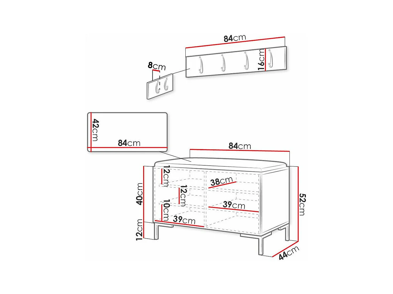 Set mobili da ingresso Hartford 267, 186x84x46cm, Bianco, Truciolare laminato|Eco pelle