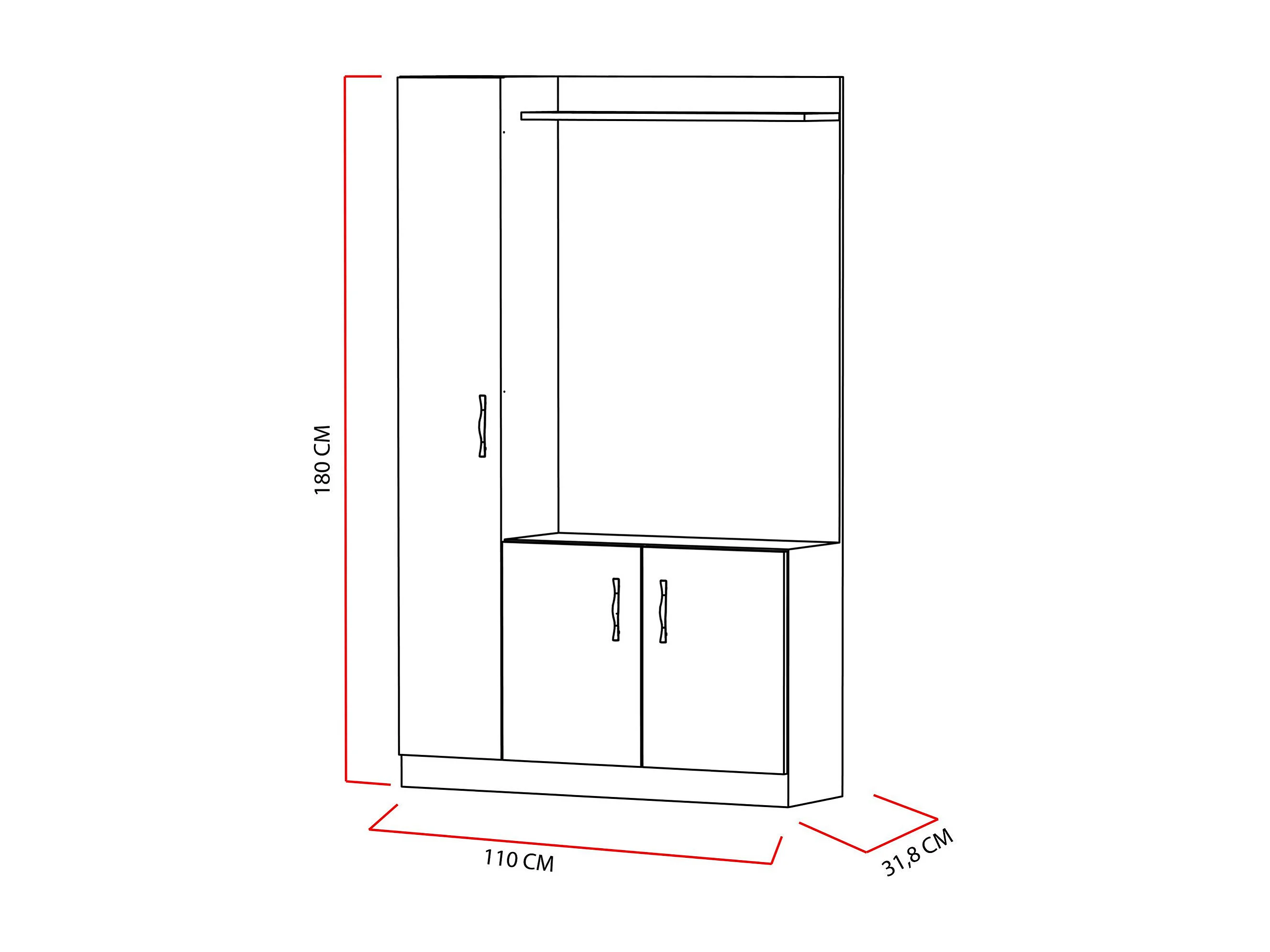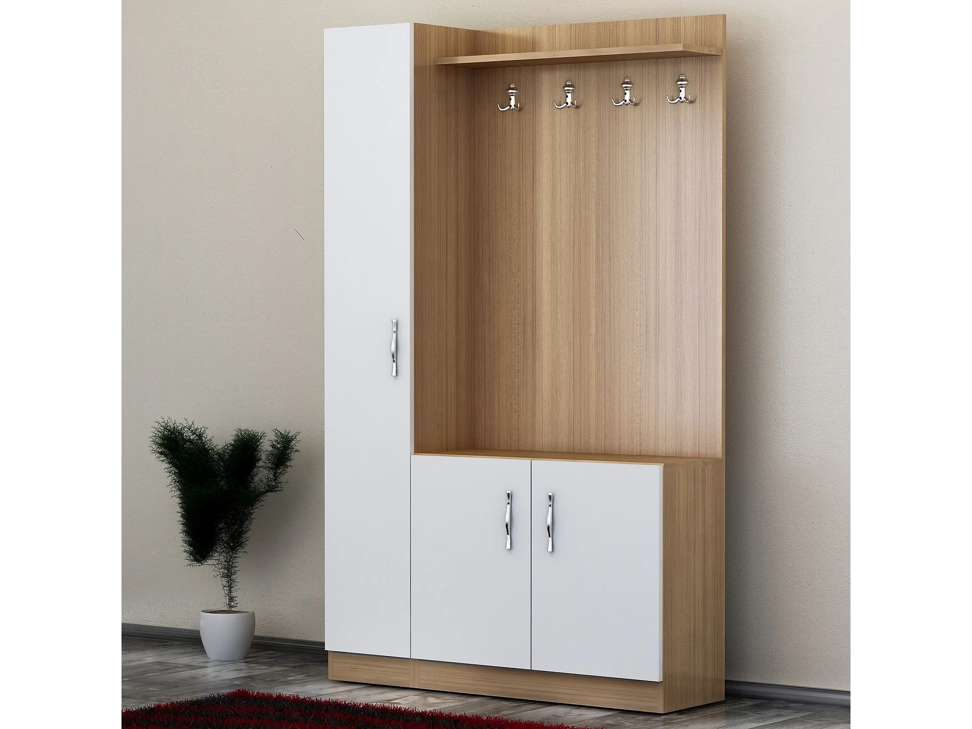 Set mobili da ingresso Kailua 595, 180x110x30cm, Bianco|Teak, Truciolare laminato