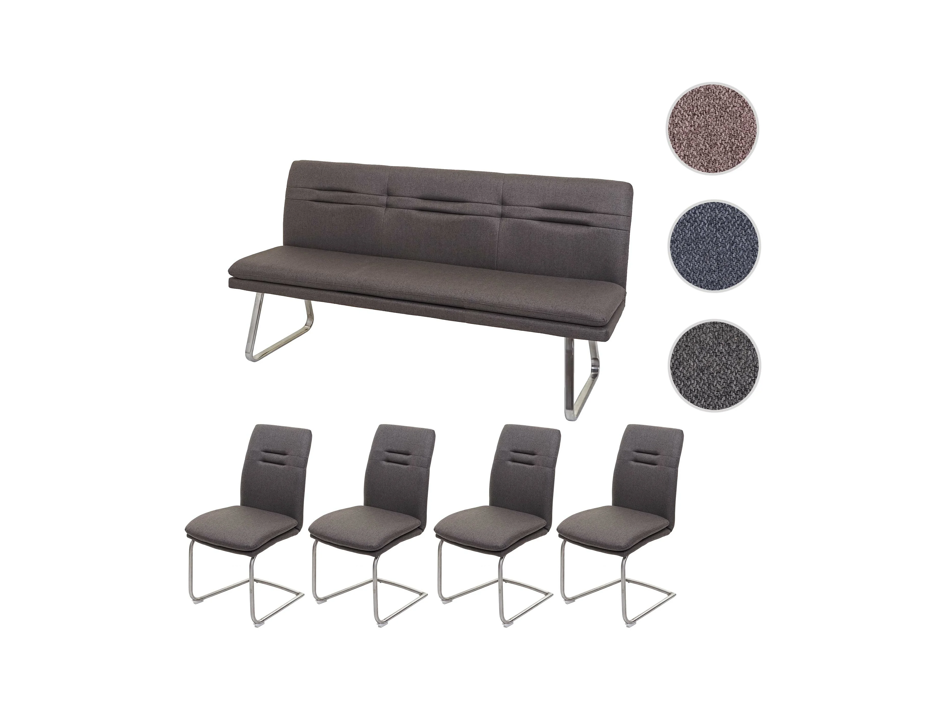 Set panca con 4x sedie sala pranzo soggiorno cucina MCW-H70 tessuto acciaio inox grigio 160cm
