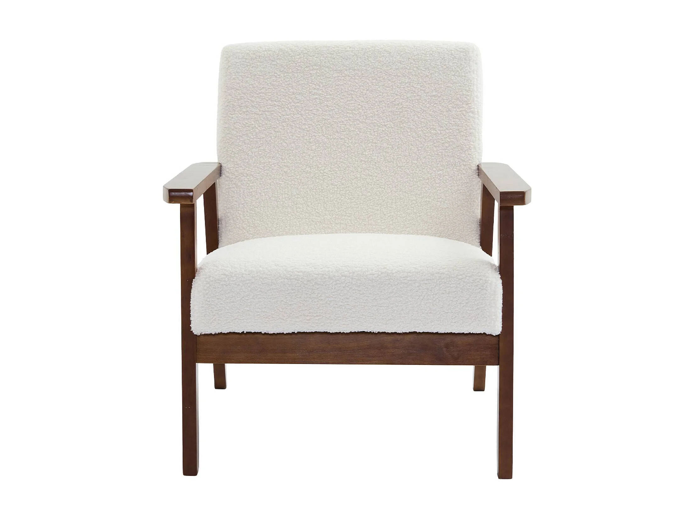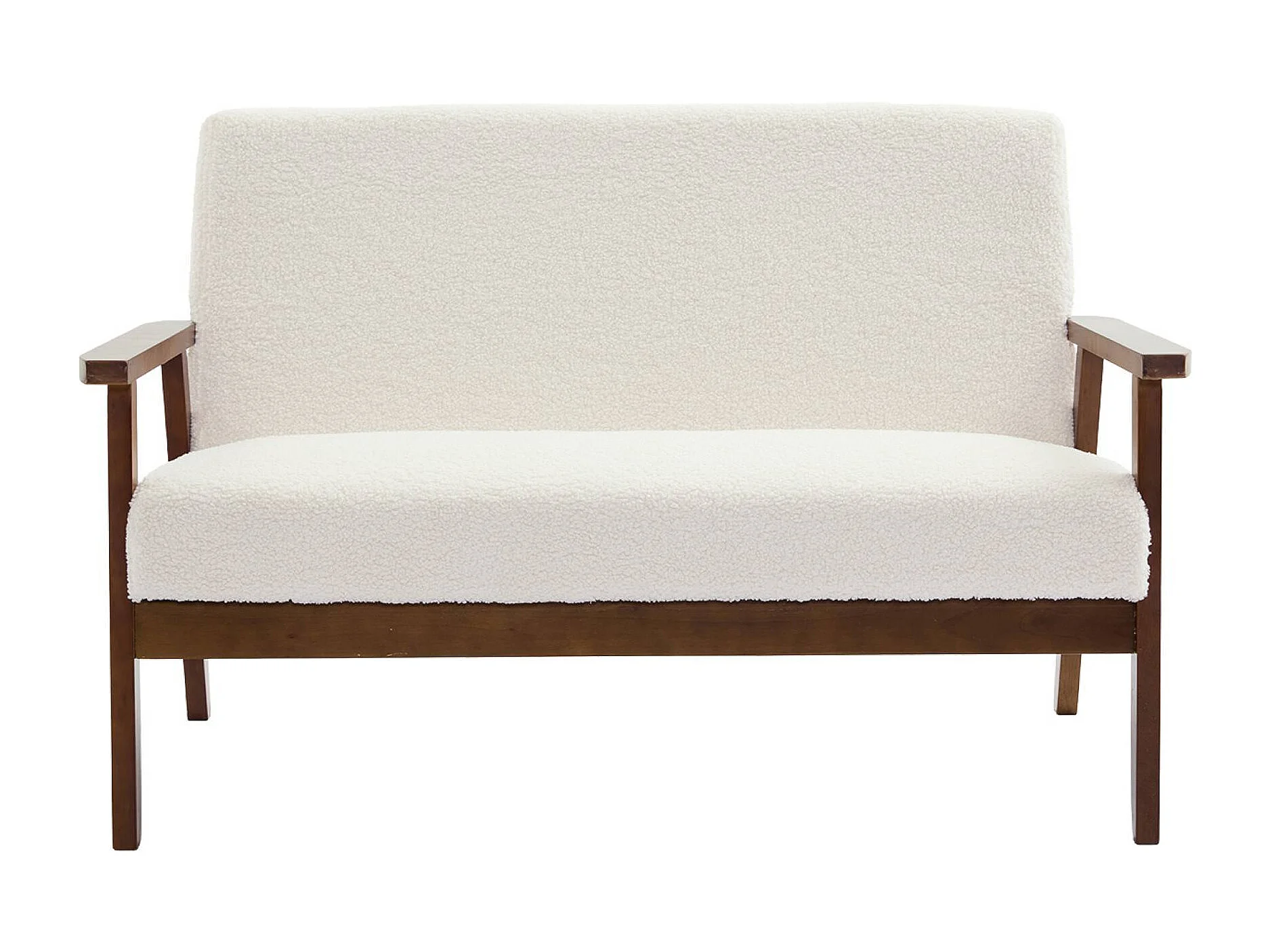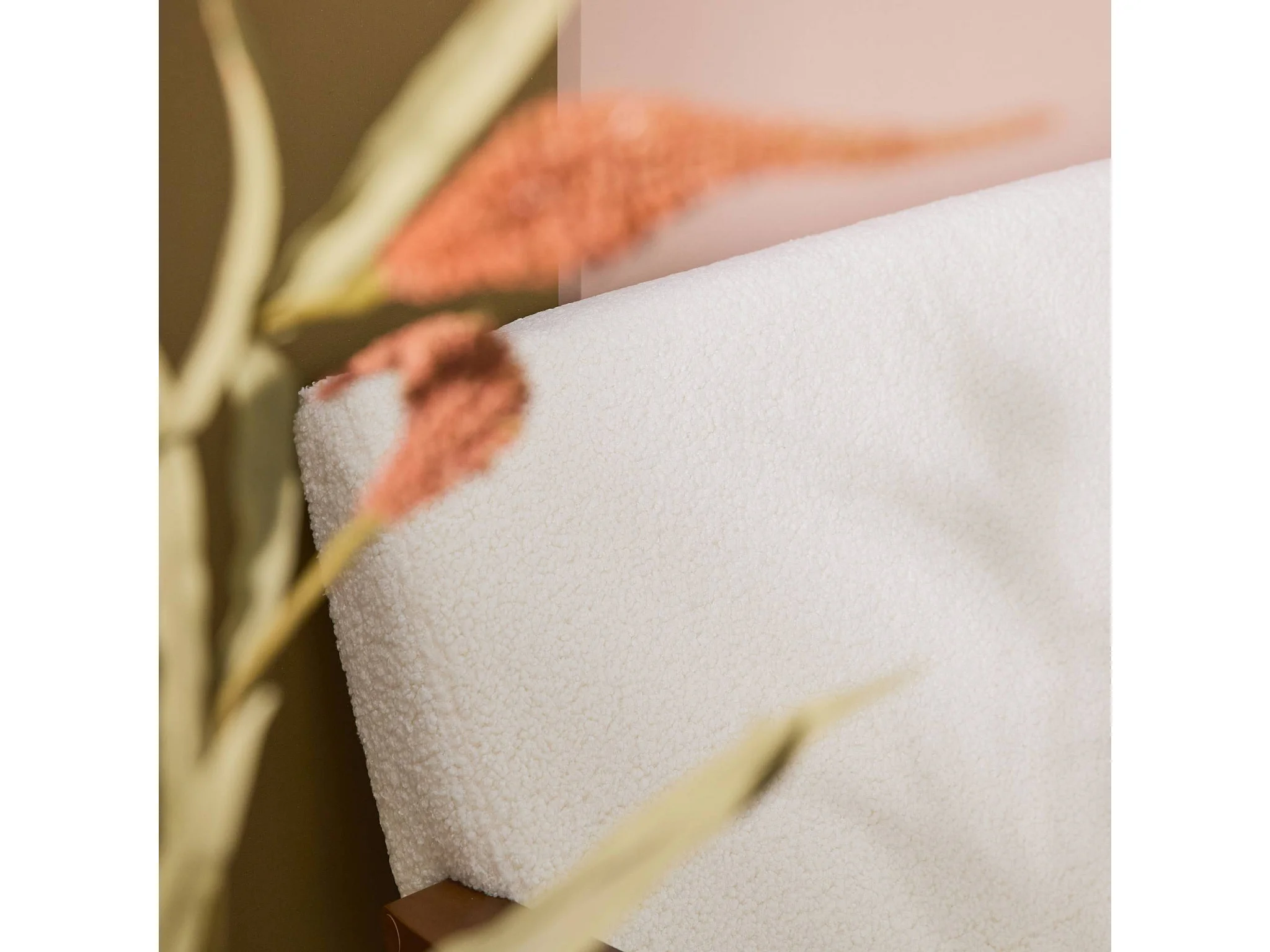Set panca e poltrona in tessuto bouclé, 3 posti, bouclé bianco
