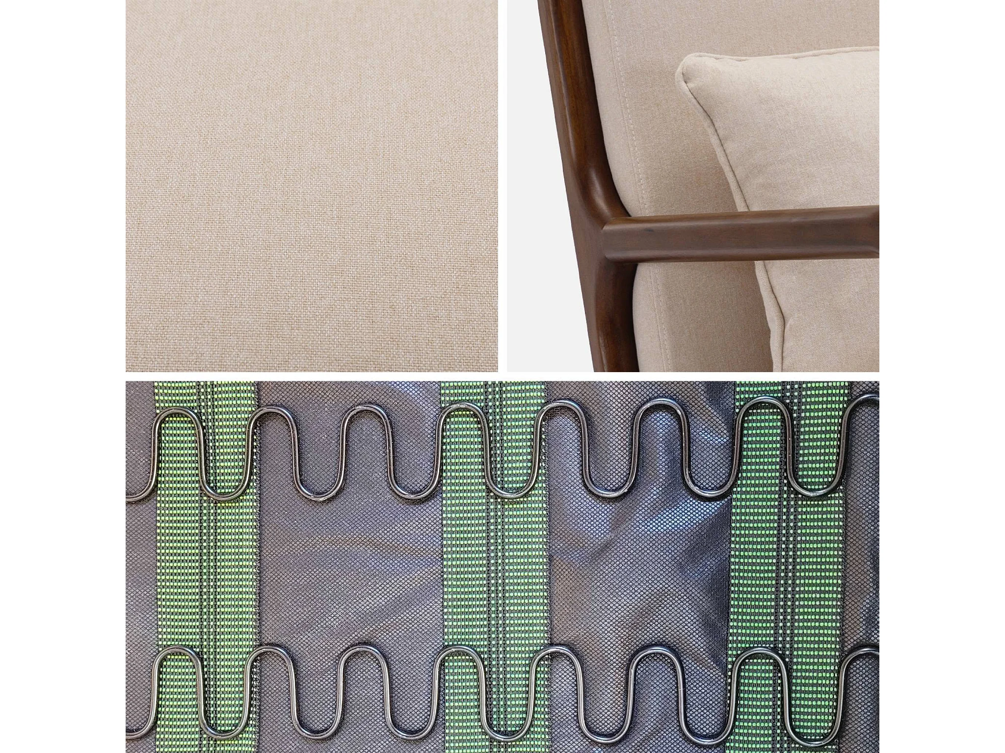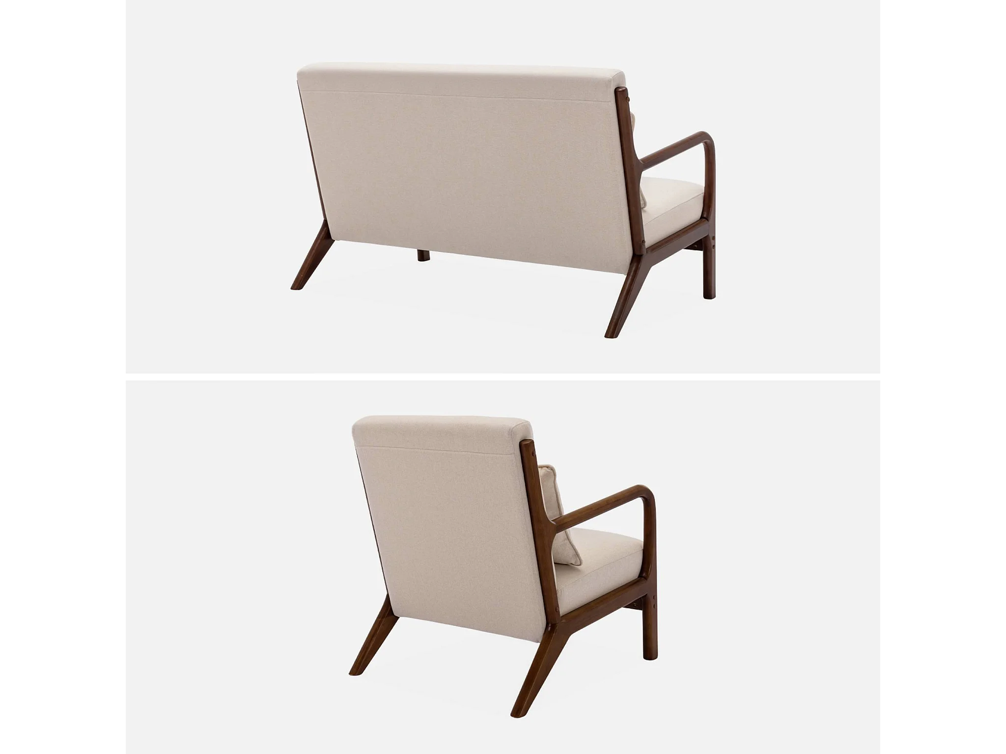 Set panca scandinava 2 posti e poltrona in legno di hevea, beige
