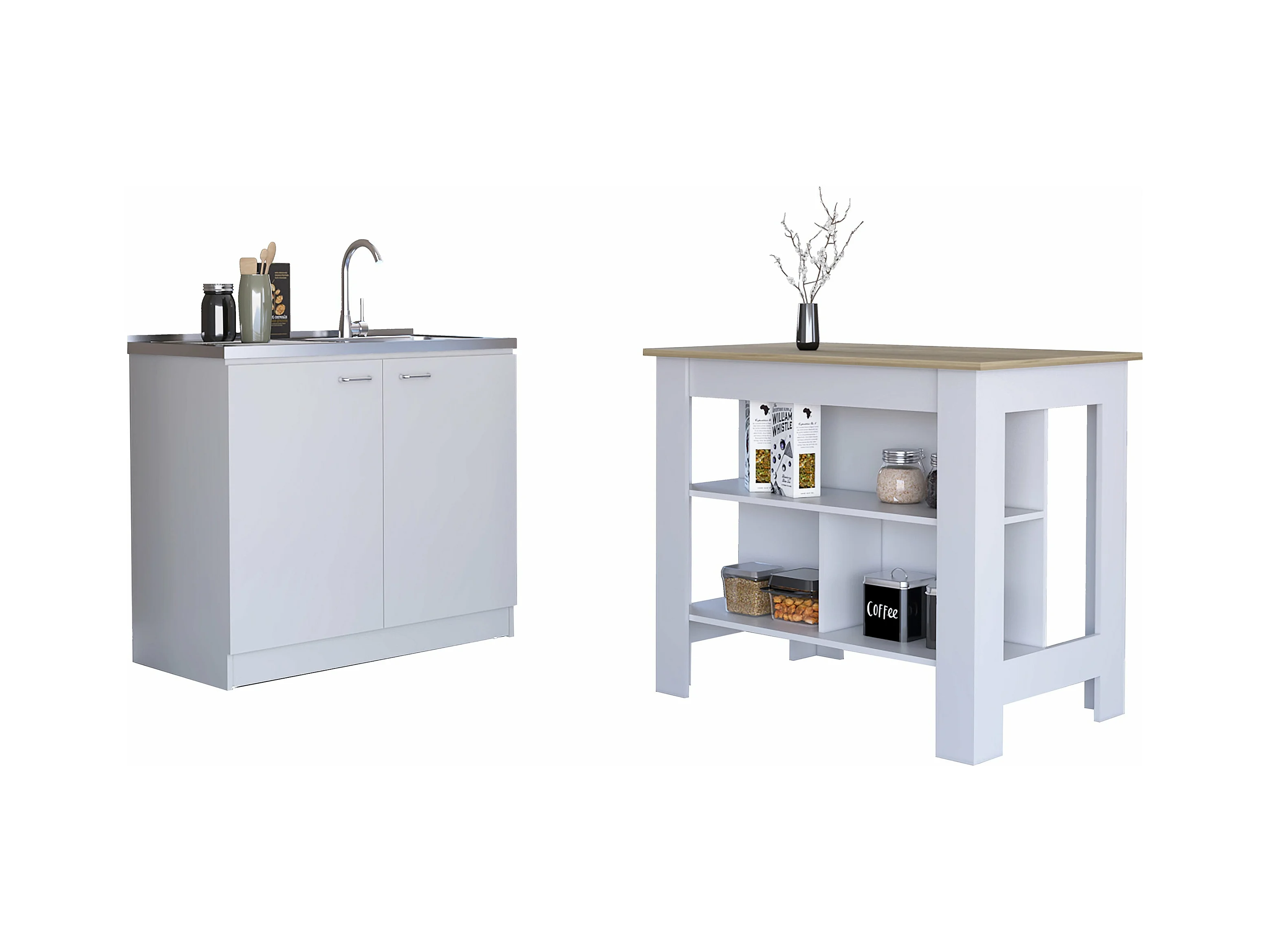 Set Charlotte, 35.4/180.6 cm Al X 40.5/60 cm An X 70/30 cm P, Bianco / Duna