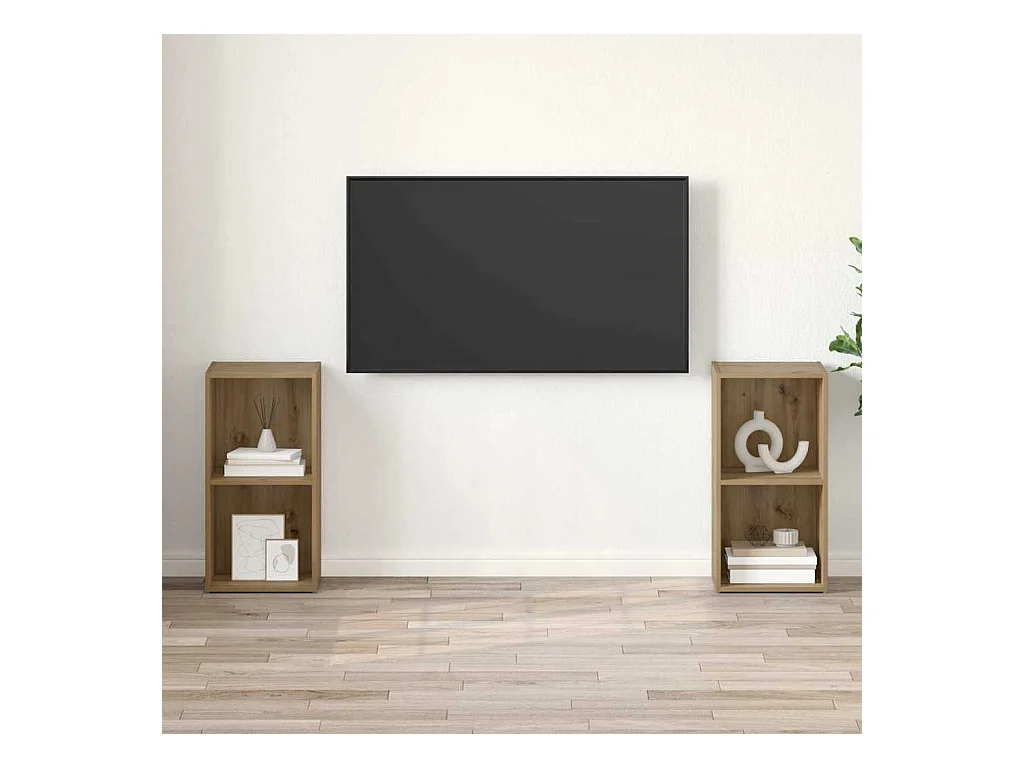Set porta TV 2 pezzi, rovere lavorato a mano, 72 x 35 x 36,5 cm