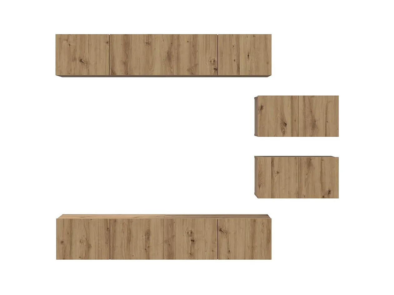 Set porta TV da parete 6 pezzi in rovere artigianale