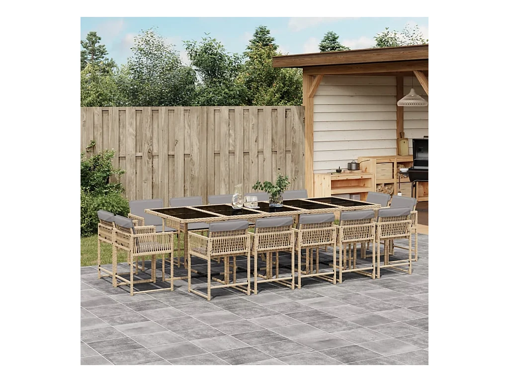 Set Pranzo da Giardino 15 pz con Cuscini Beige Misto Polyrattan