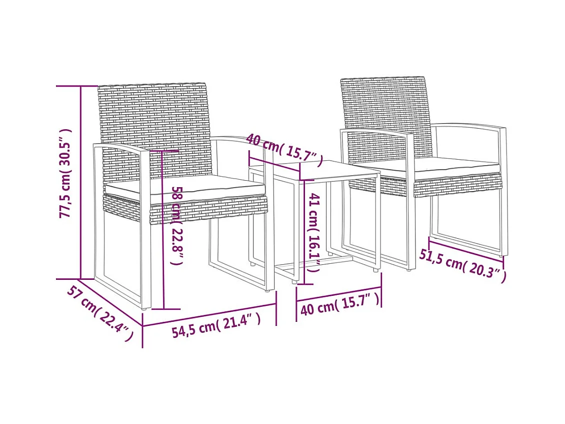 Set di mobili da giardino grigio 55x74,5x54 cm 44,5x44,5 cm