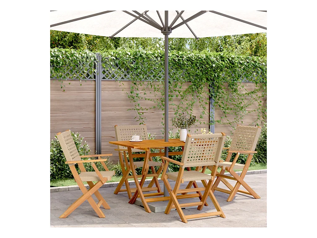Set Pranzo da Giardino 5 pz Beige Polyrattan e Legno Massello