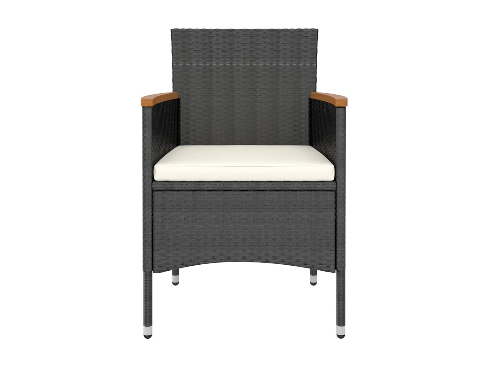 Set Pranzo da Giardino 3 pz con Cuscini Nero Polyrattan Acacia