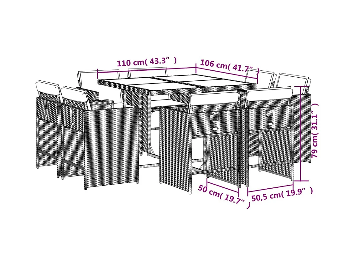 Set Pranzo da Giardino 9 pz con Cuscini Beige Misto Polyrattan