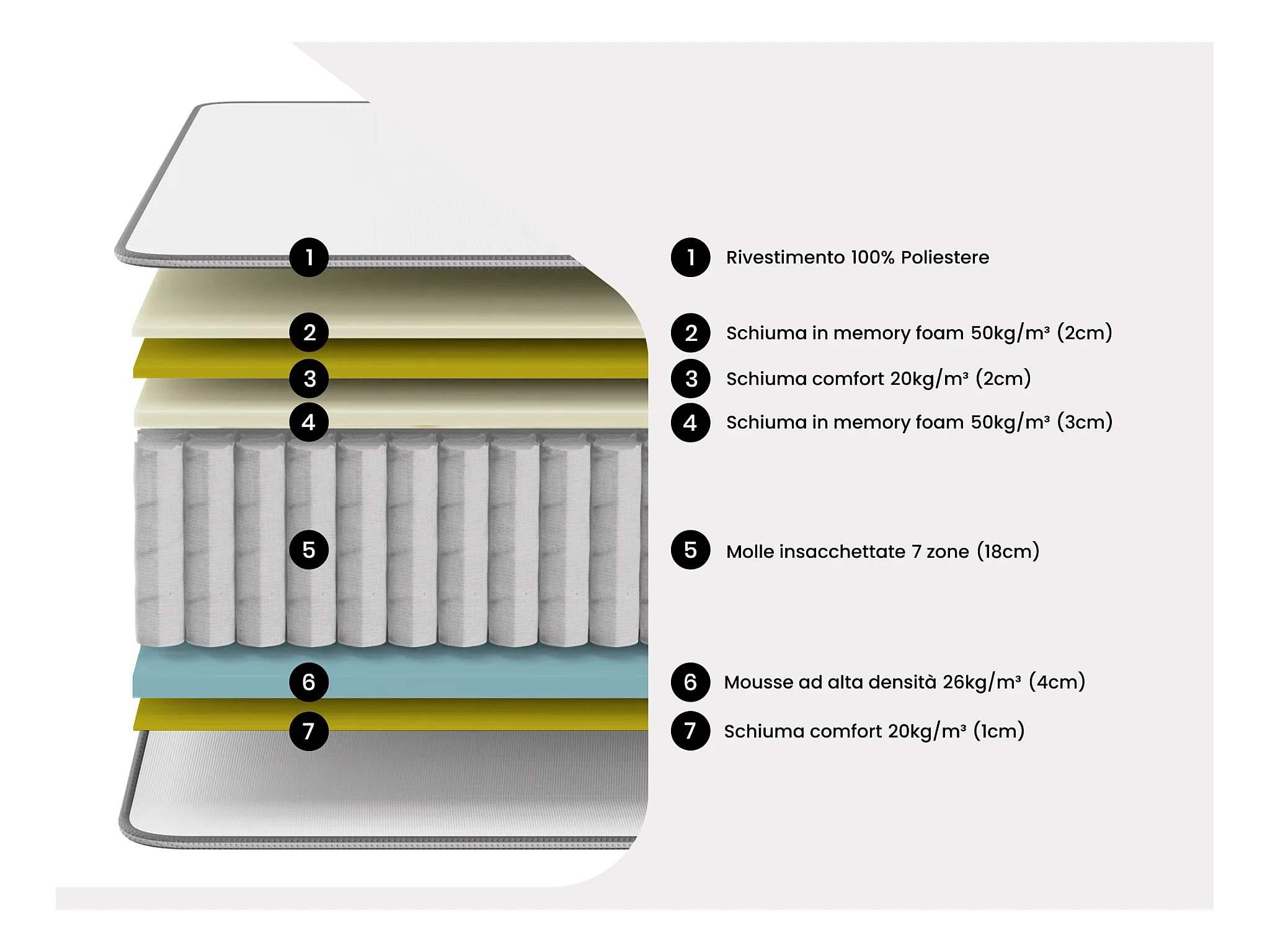 Set Rete deco in kit + Materasso molle insacchettate 7 zone e memory foam sp.30cm 180x200cm - ASGARD di YSMÉE