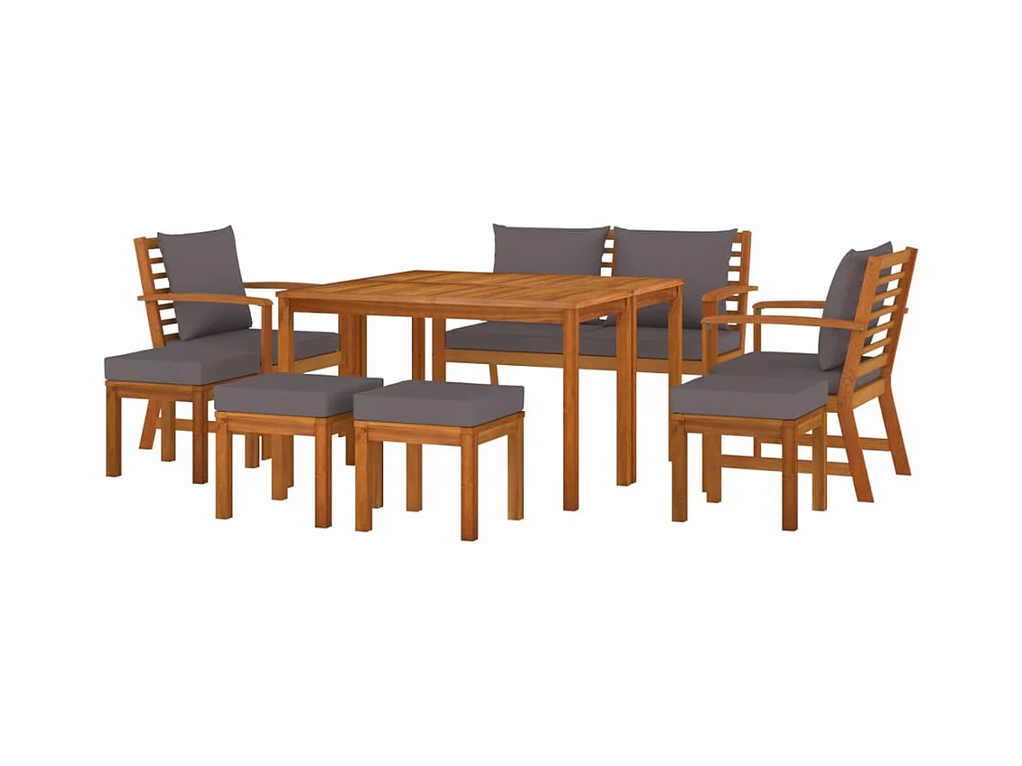 Set sala da pranzo da giardino cuscini arredo esterno 9 pezzi in legno di acacia 02_0014185