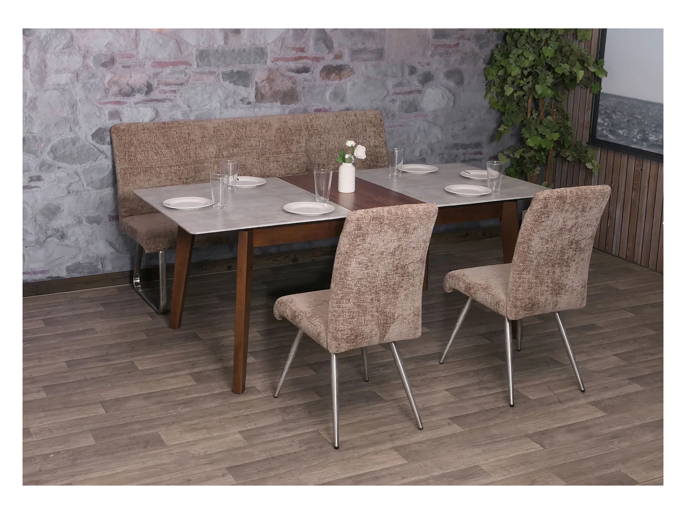 Set sala da pranzo MCW-G55, 2 sedie + panca 180cm, acciaio inox stoffa/tessuto ciniglia ~ marrone