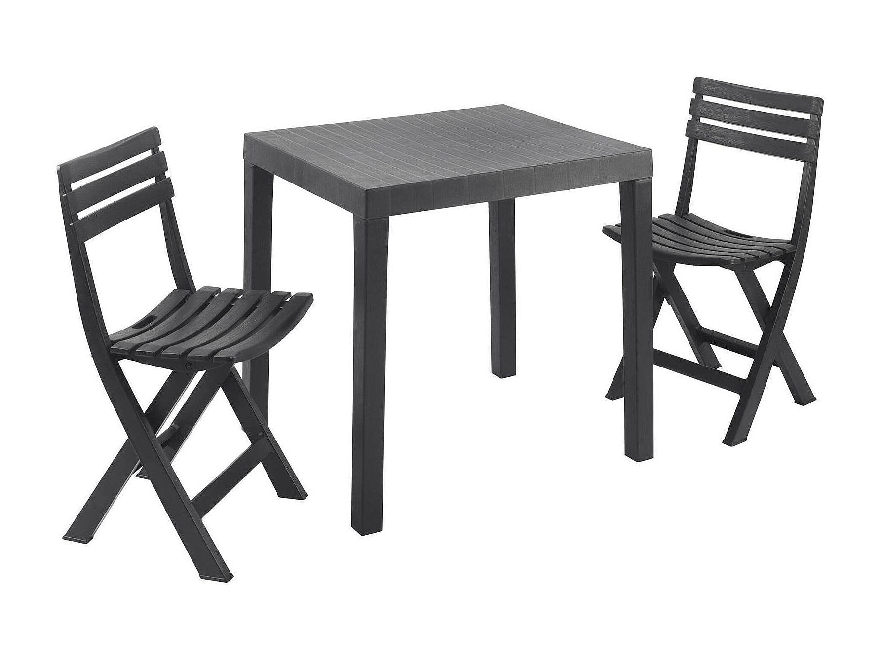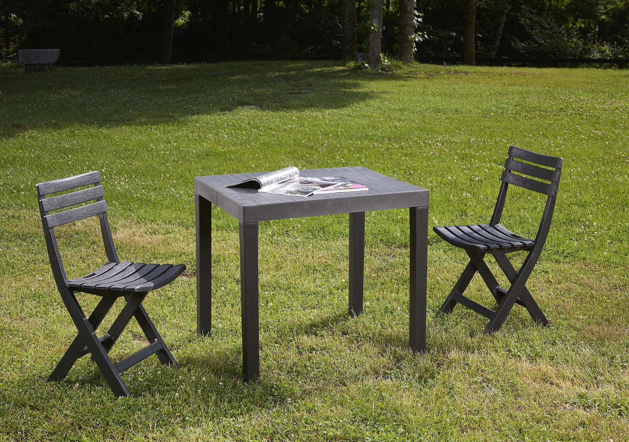 SET SALOTTO DA ESTERNO - Set da giardino con 1 tavolo rettangolare e 2 sedie pieghevoli, Set indoor e outdoor da Pic Nic, 100% Made in Italy, Antracite.