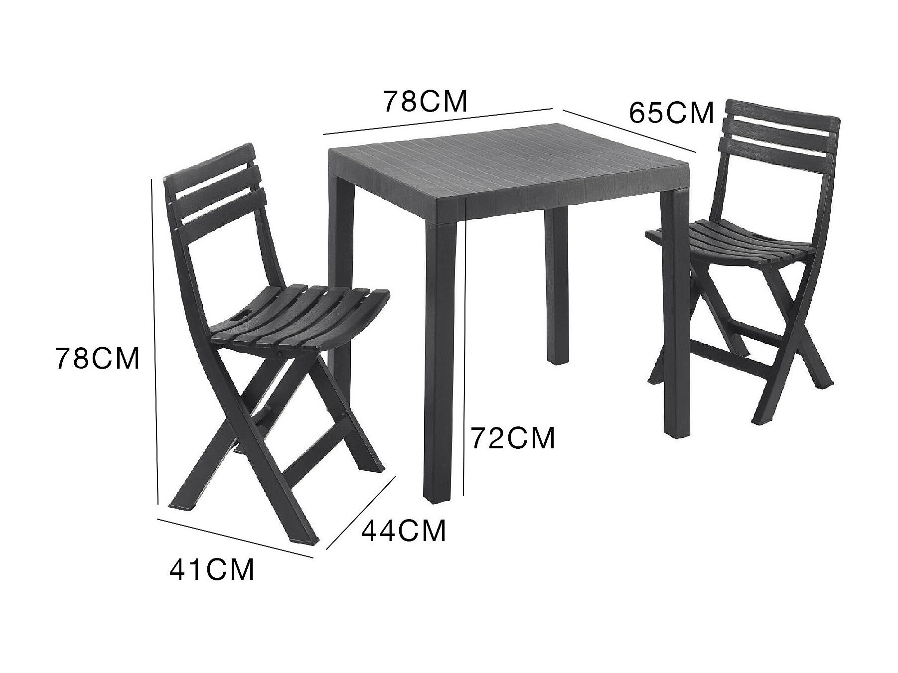 STRUTTURA E UTILIZZO - Articolo formato da un elegante set da esterno composto da un tavolo rettangolare e due sedie pieghevoli - Il tavolo ampio e le sedute spaziose garantiscono relax e comodità in casa propria - Perfetto per dei picnic all'aperto - Salottino perfetto per arredare il proprio spazio outdoor o indoor, grazie alla composizione in plastica rinforzata con effetto doghe che ne accresce lo stile - Perfetto per brunch, picnic ed aperitivi in terrazzo, veranda, giardino o per rilassarsi a bordo piscina.