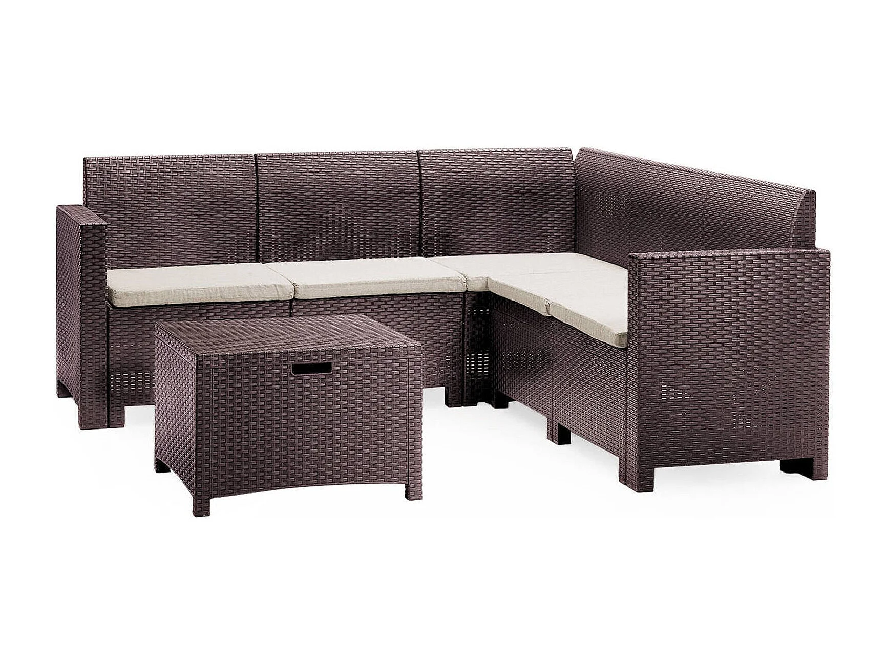 Dmora set Salotto da Esterno Eris Marrone 5 Posti Antiurto, Waterproof, 100% Resina Riciclabile, Lavabile, Salottino Outdoor un Tavolino Made in Italy