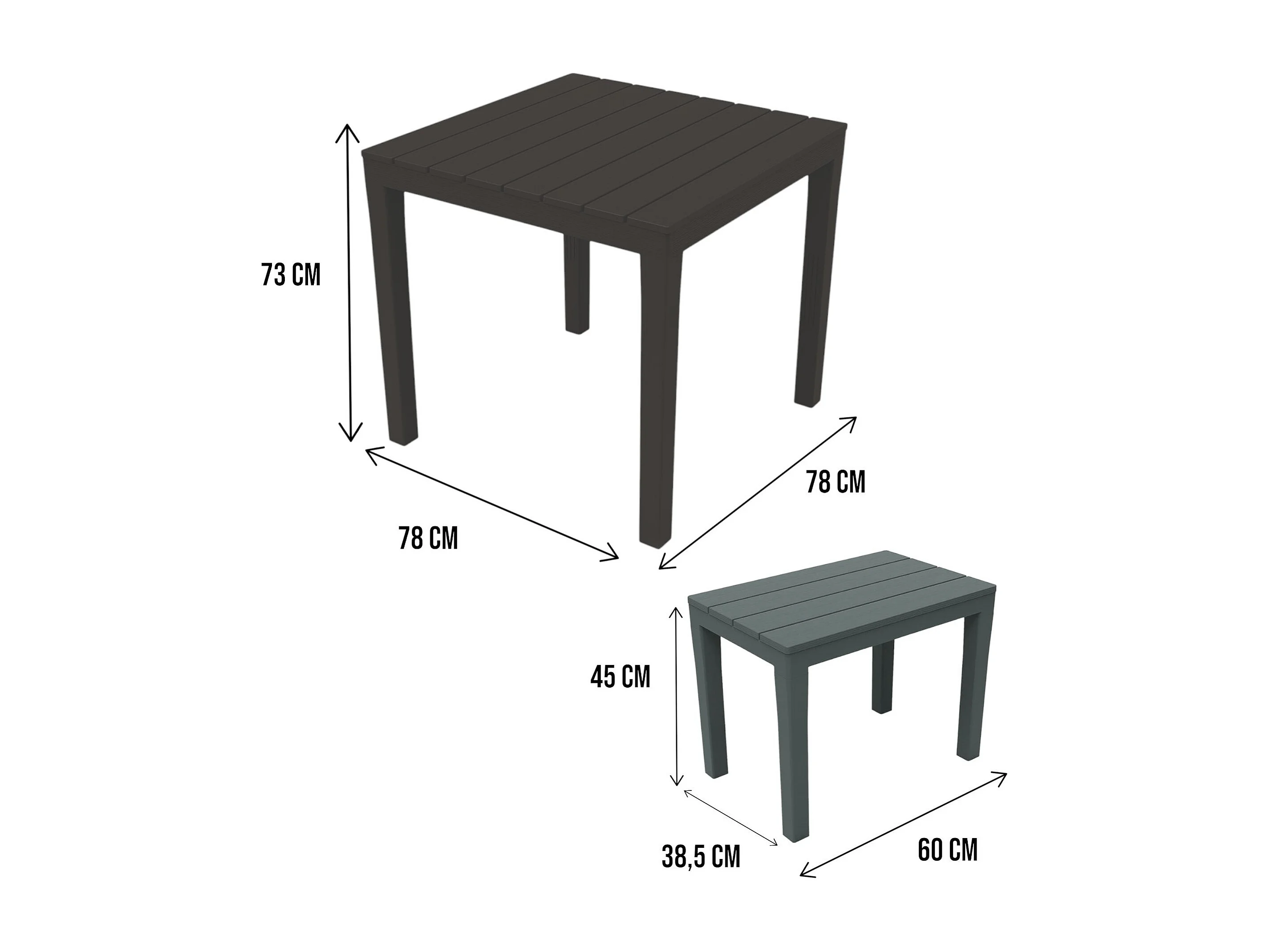 Set salotto da esterno Moncalieri, Set da giardino con 1 tavolo quadrato e 2 panche, Set indoor e outdoor da Pic Nic, 100% Made in Italy, Antracite