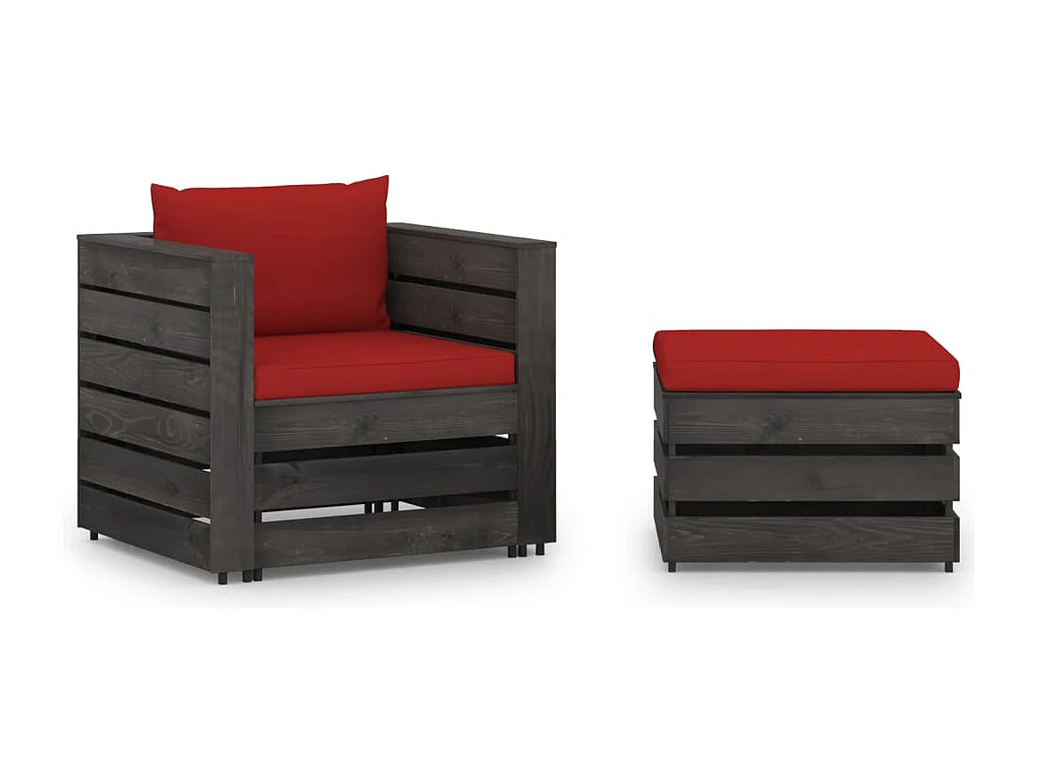 Set Salotto da Giardino 2 Pz con Cuscini Legno Impregnato Grigio CFW297735