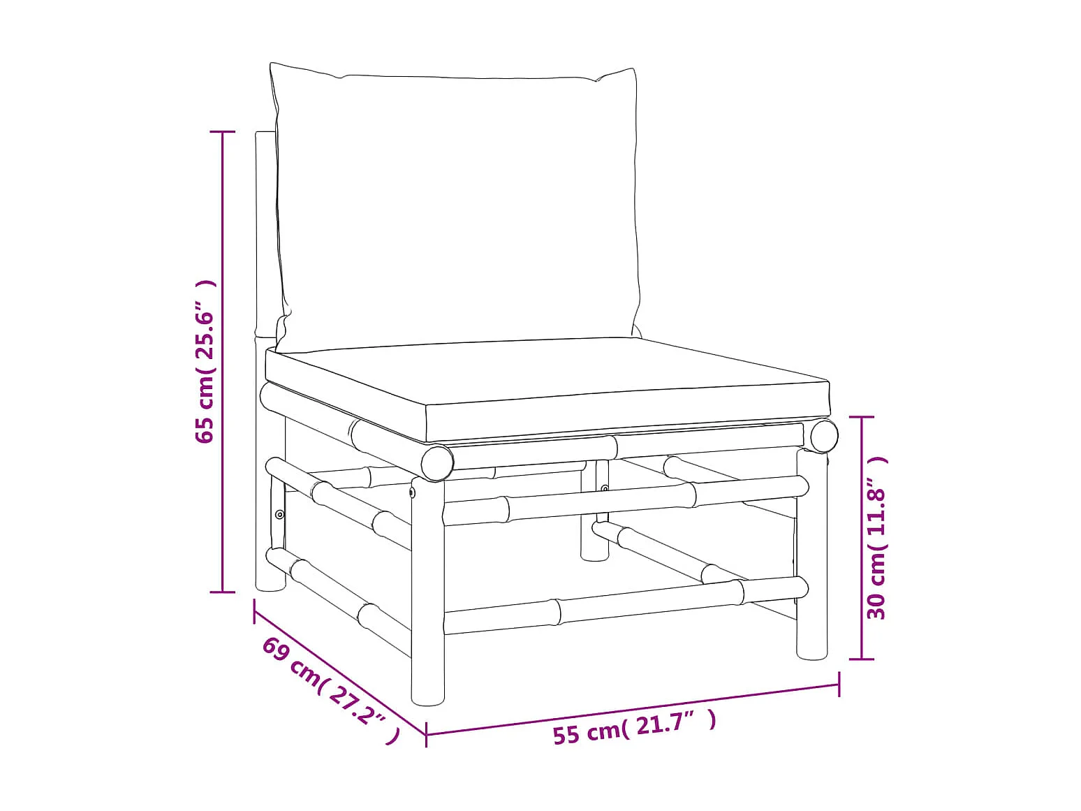Set Salotto da Giardino 2pz con Cuscini Grigio Chiaro Bambù