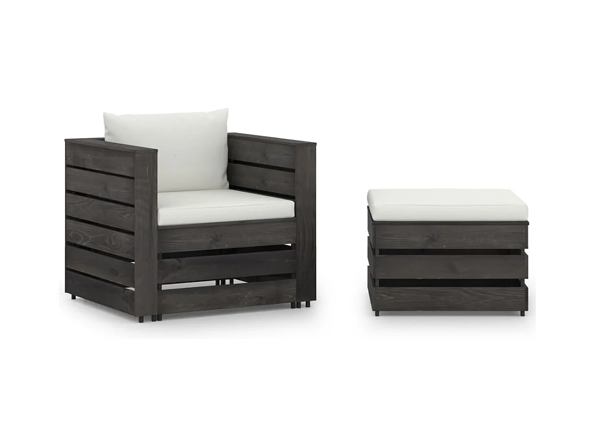 Set Salotto da Giardino 2pz con Cuscini Legno Impregnato Grigio