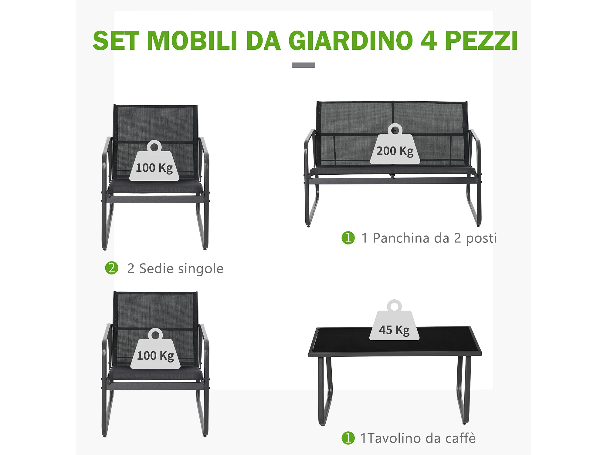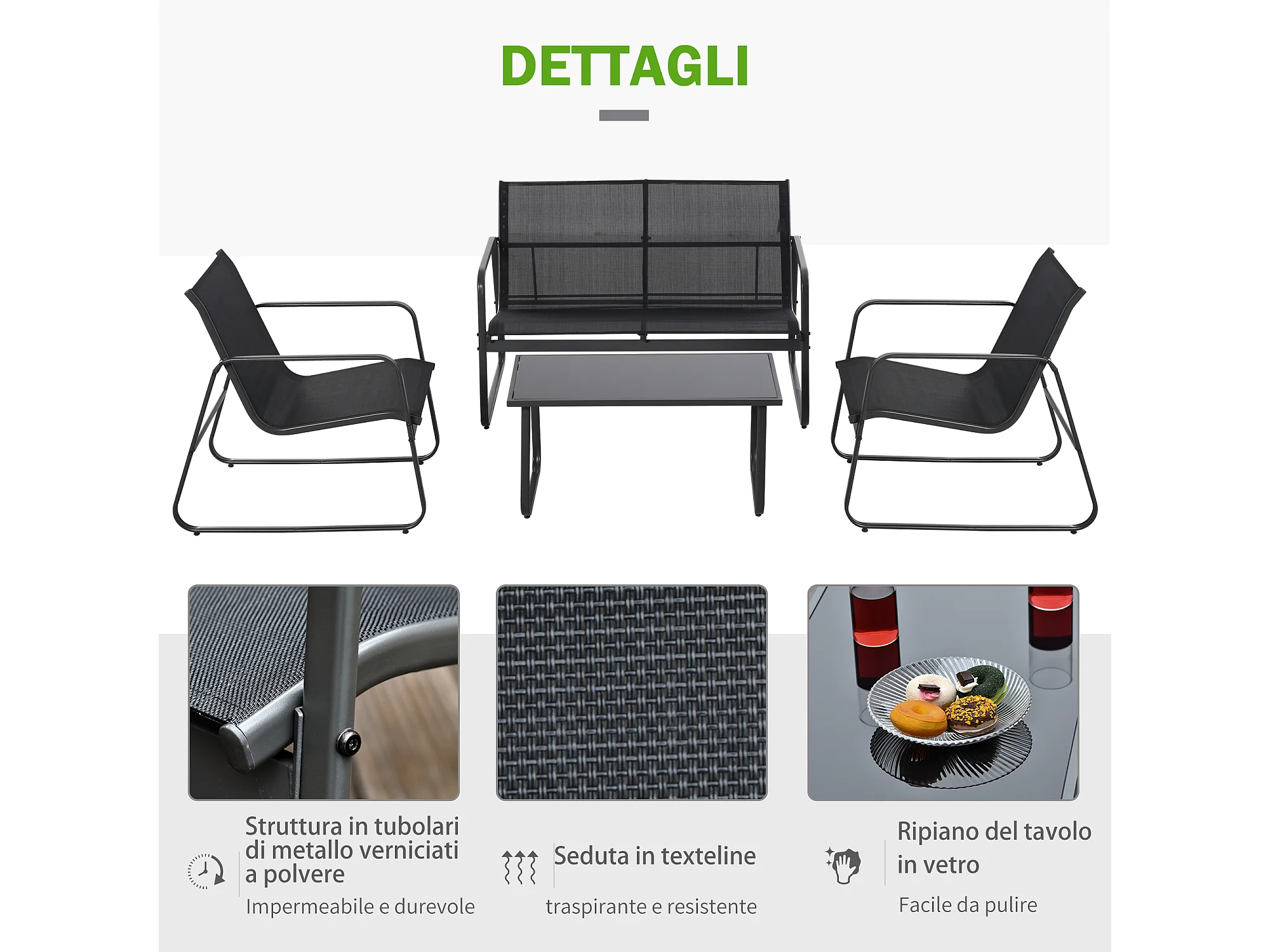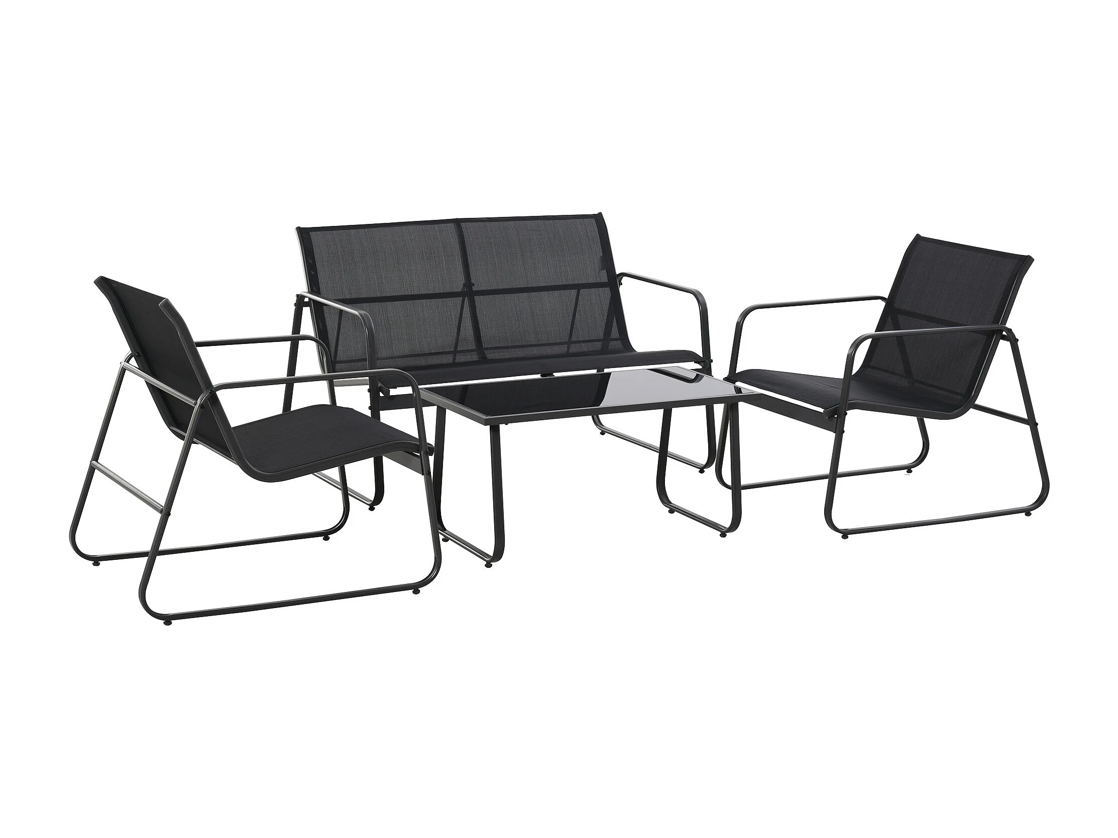 Set Salotto da Giardino 4 Pezzi con Divano 2 Posti 2 Sedie e Tavolino in Vetro Temperato