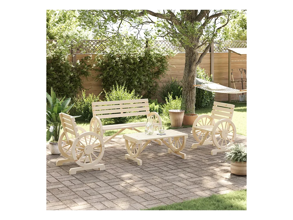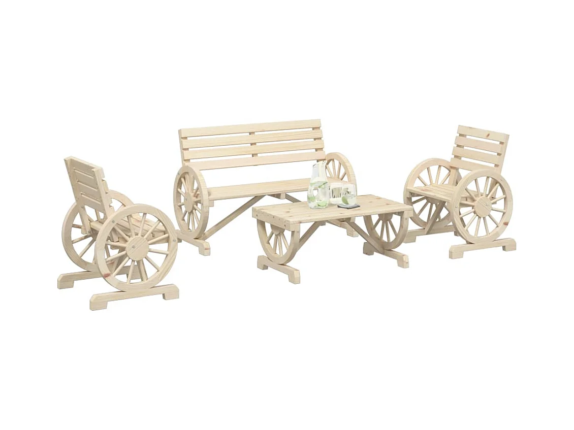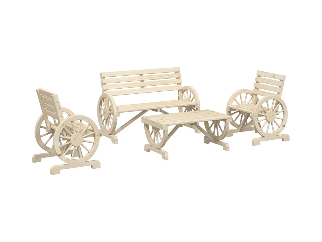 Set Salotto da Giardino 4 pz in Legno Massello di Abete