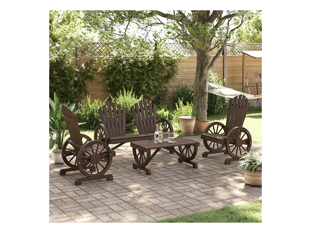 Set Salotto da Giardino 4 pz in Legno Massello di Abete