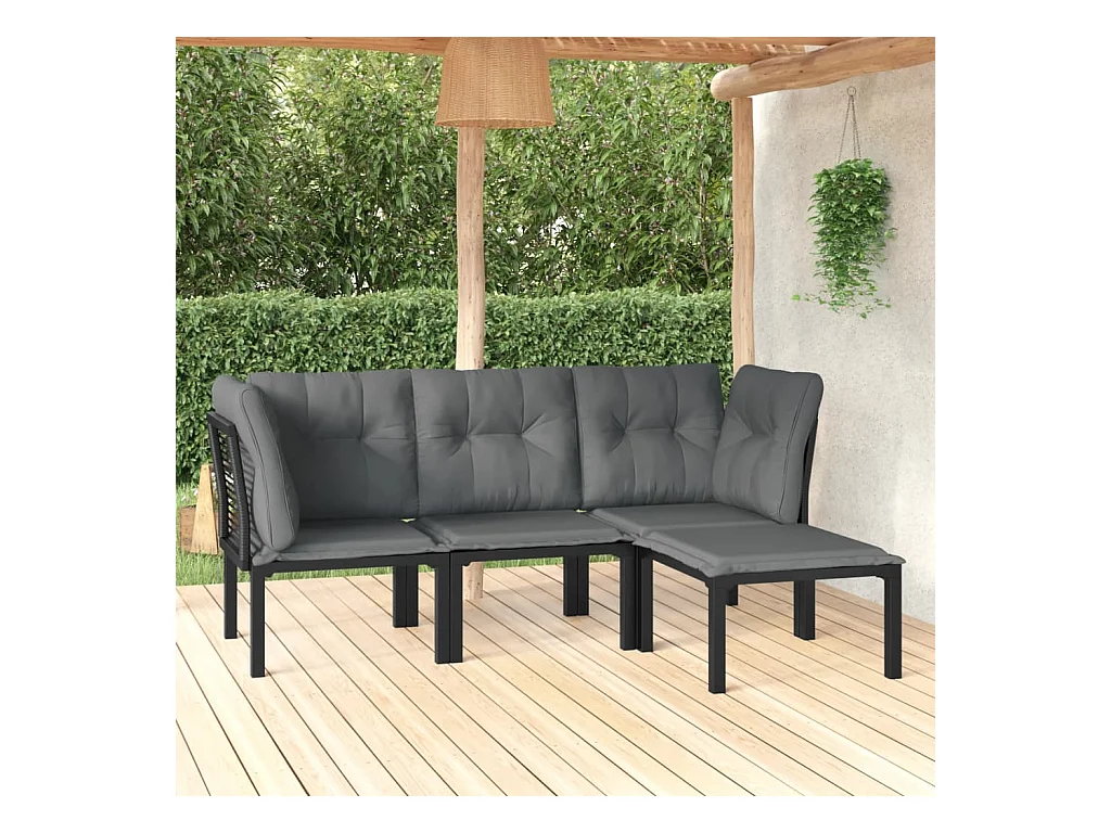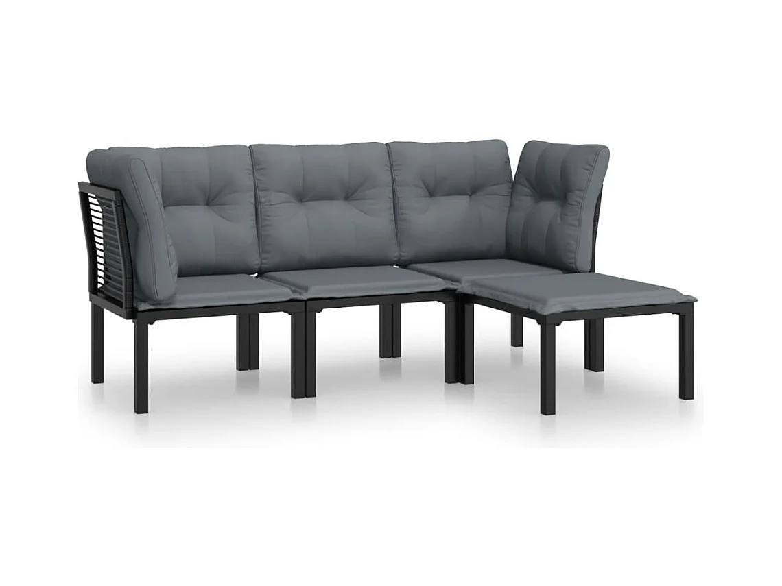 Set Divani da Giardino 4 pz con Cuscini Nero in Polyrattan