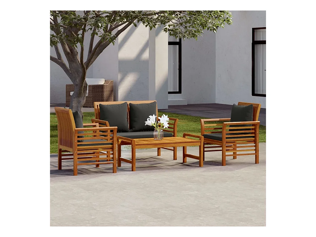Set Salotto da Giardino 4pz con Cuscini Legno Massello Acacia