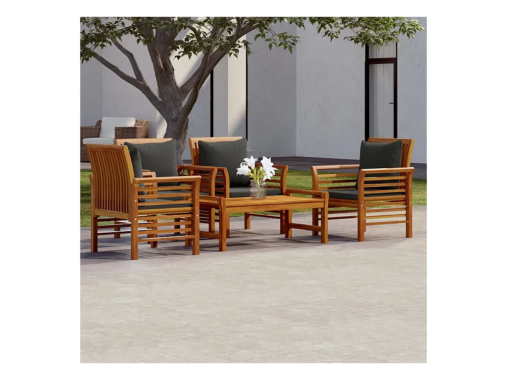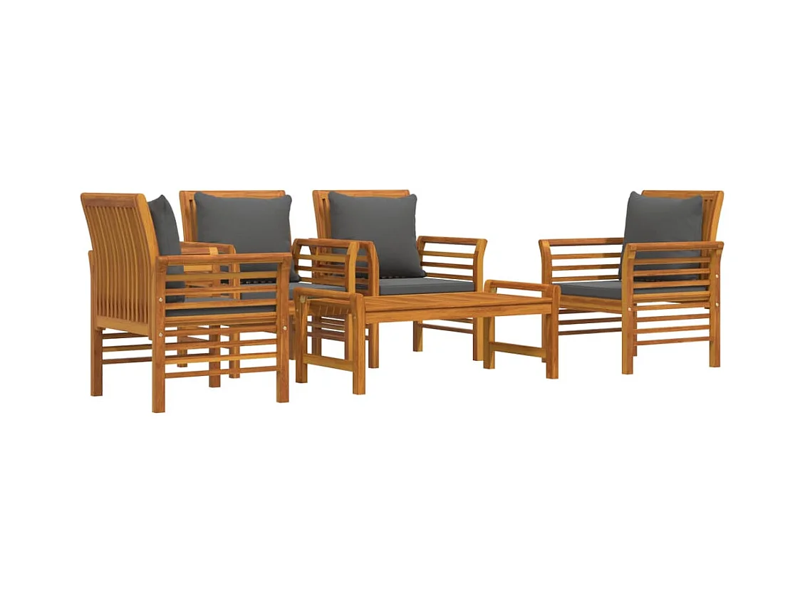 Set Salotto da Giardino 5 pz con Cuscini Legno Massello Acacia