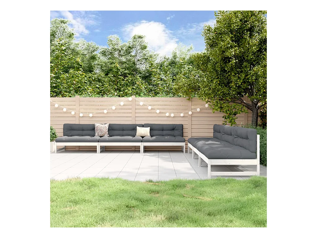 Set Salotto da Giardino 6 pz Bianco in Legno Massello di Pino