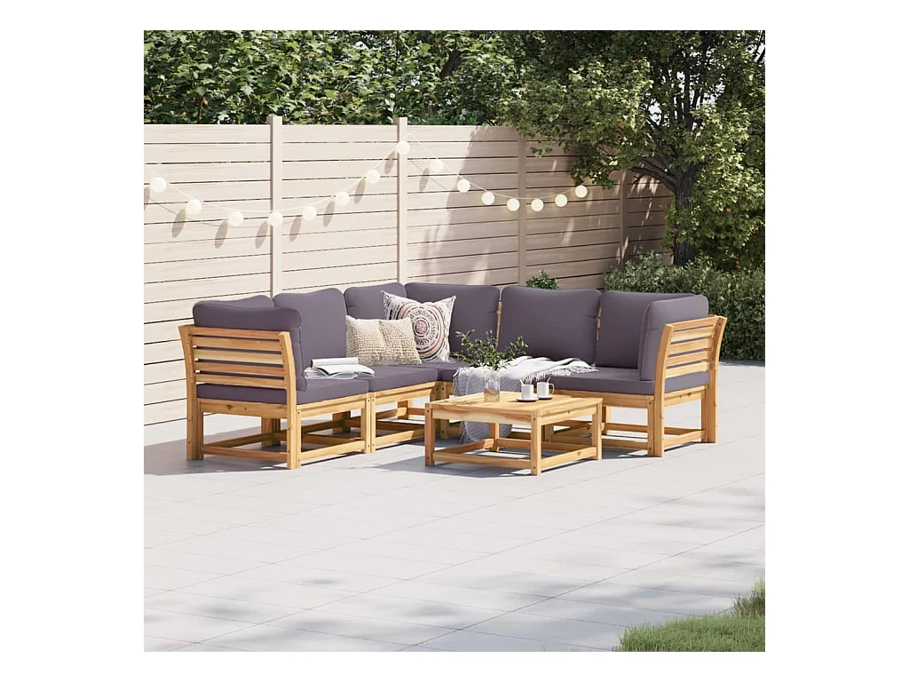 Mobili da giardino con cuscini 7 pezzi in legno massello di acacia