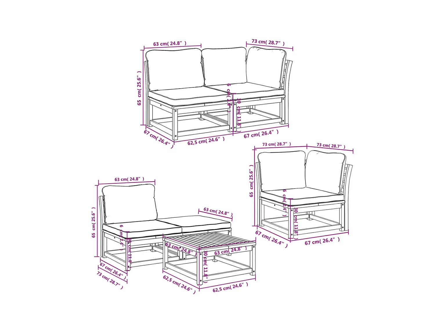 Mobili da giardino con cuscini 5 pz. Legno massello di acacia