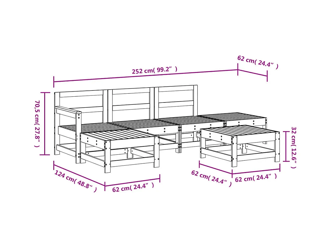 Set Salotto da Giardino 6 pz in Legno Massello di Pino