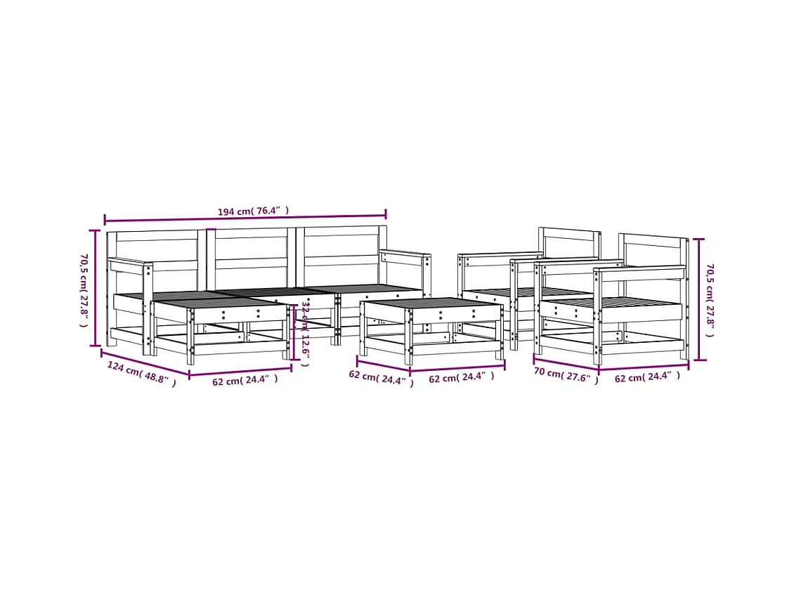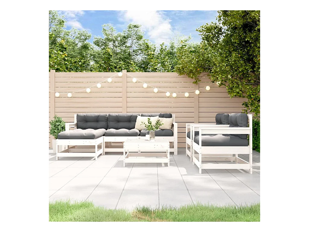 Set Salotto da Giardino 8 pz in Legno Massello di Pino Bianco