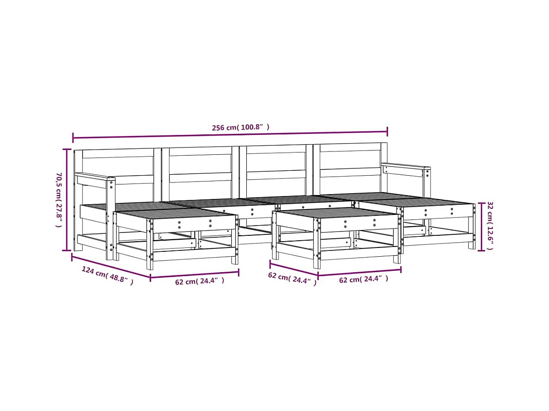 Set Salotto da Giardino 7 pz in Legno Massello di Pino