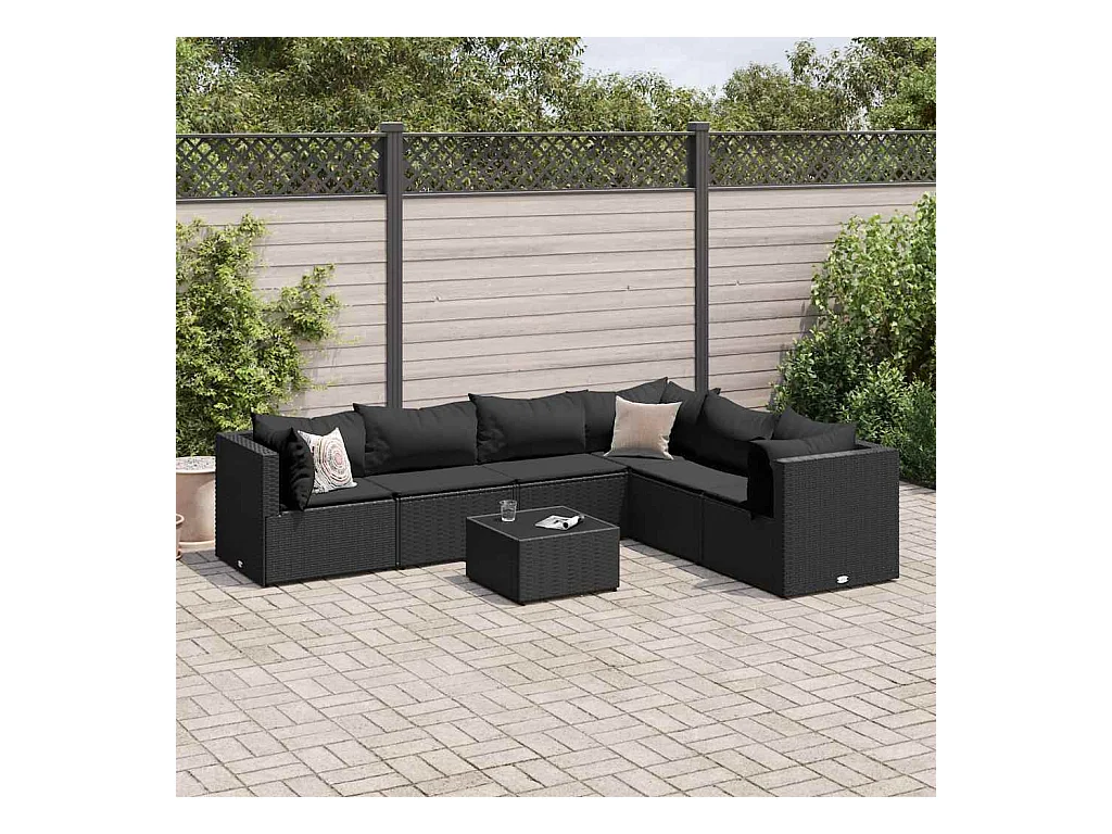 Set Divani da Giardino con Cuscini 7pz Nero Polyrattan